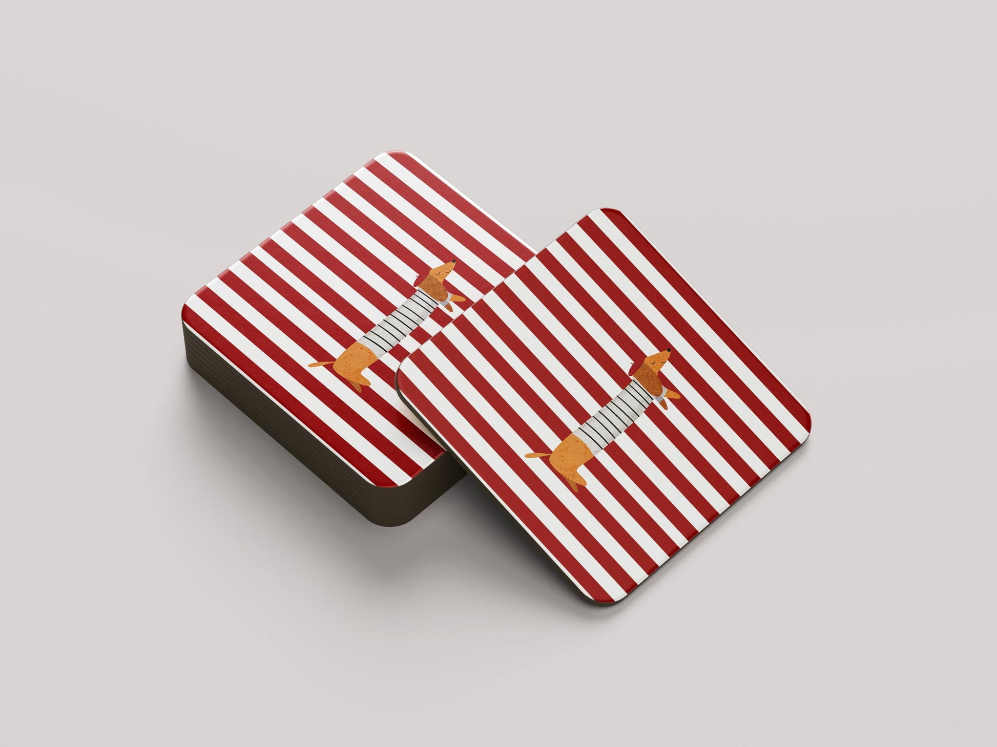 Breng Parijse elegantie in je huis met deze prachtige bordeaux-witte teckel onderzetter! Perfect voor elke hondenliefhebber die houdt van stijl, kwaliteit en een vleugje Franse charme.