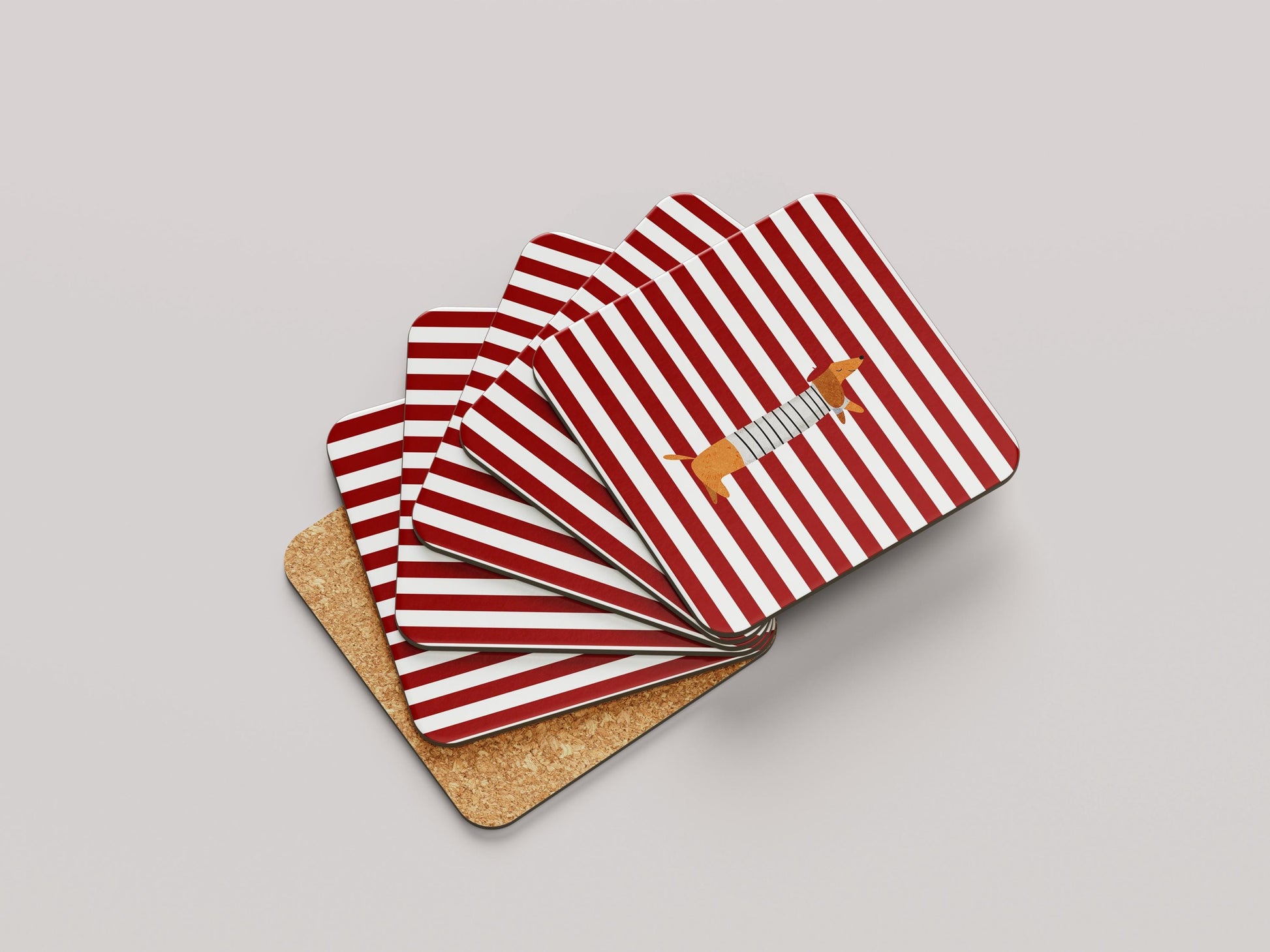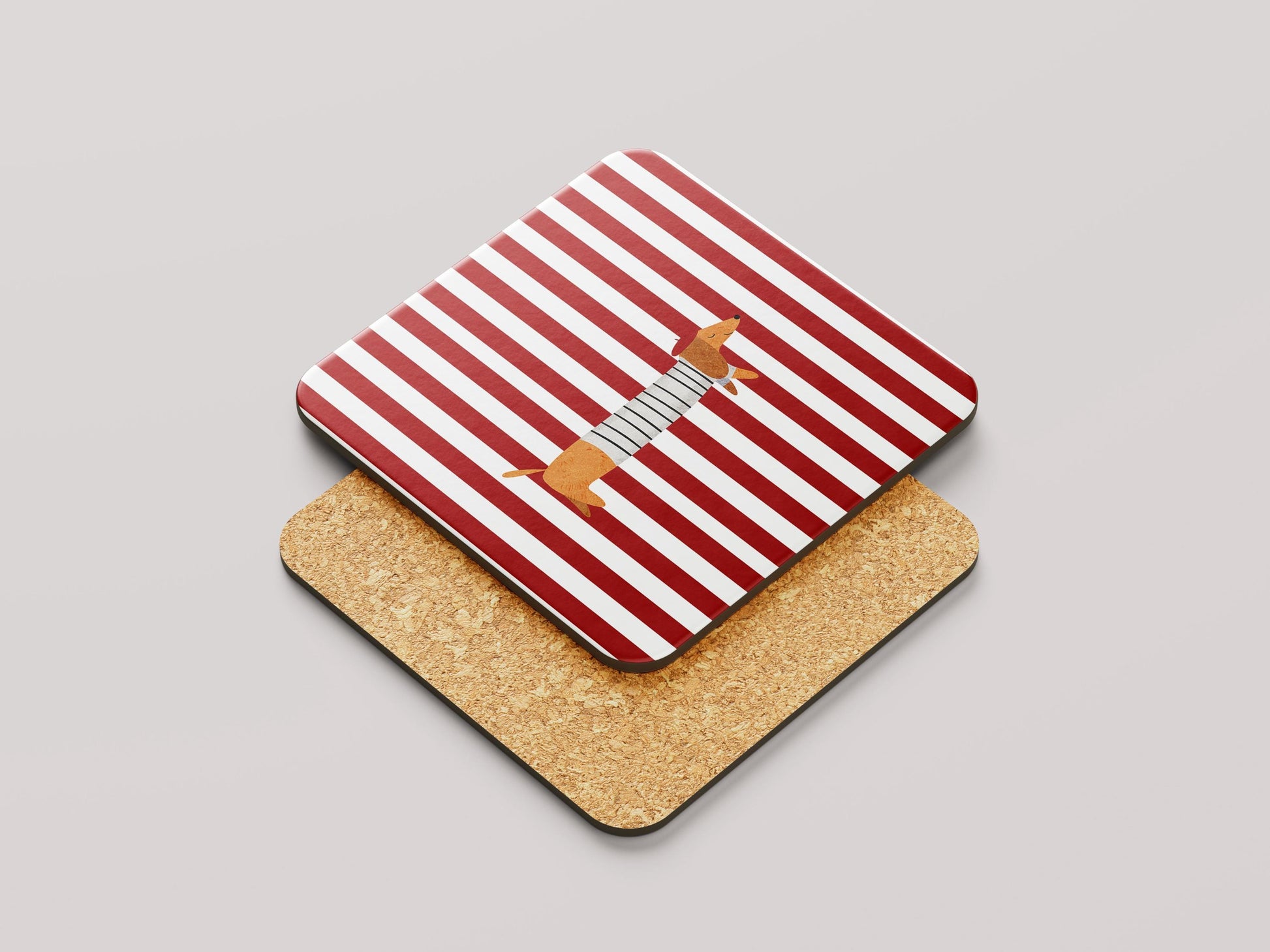 Stel je voor hoe deze elegante onderzetter je koffietafel transformeert. De rijke bordeaux kleur gecombineerd met het klassieke wit creëert een tijdloze uitstraling. Elke keer dat je je favoriete drankje neerzet, word je herinnerd aan de speelse charme van teckels en de romantische sfeer van Parijs.
