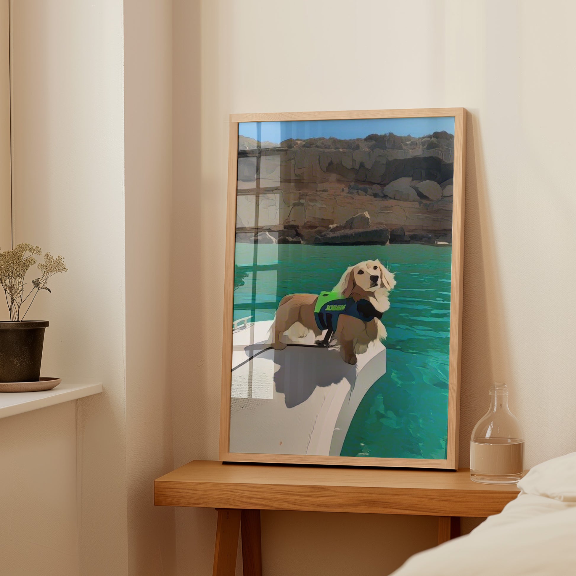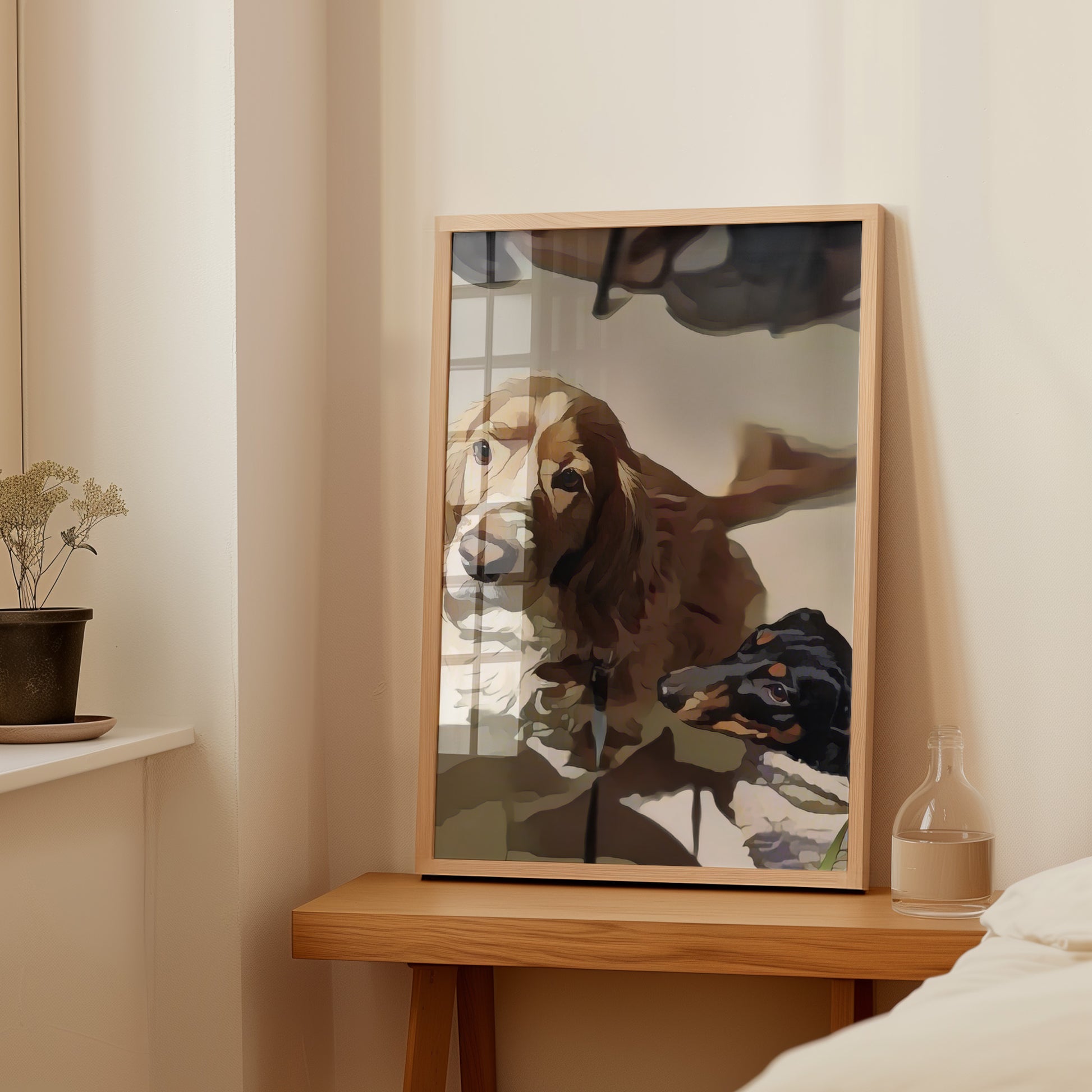 Verander je favoriete foto van je hond in een prachtige wandprint die elke ruimte opfleurt. Een tijdloze herinnering aan je trouwe viervoeter die je elke dag doet glimlachen!