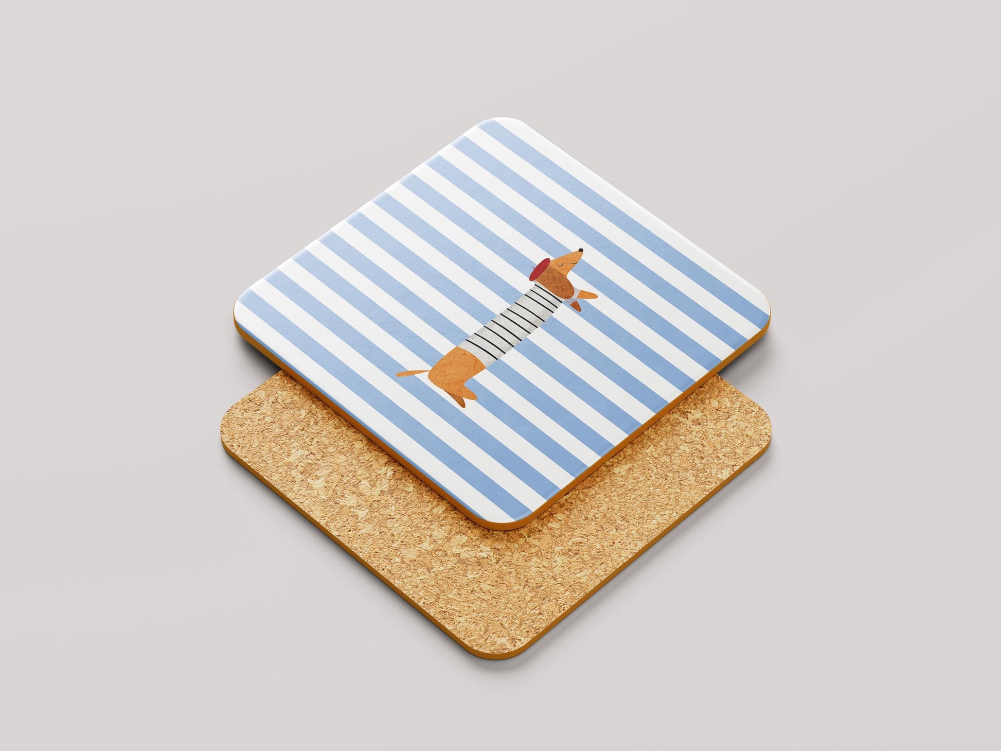 La Saucisse Parisienne Lichtblauw Onderzetter - Teckel Illustratie Cadeau voor Hondenliefhebbers