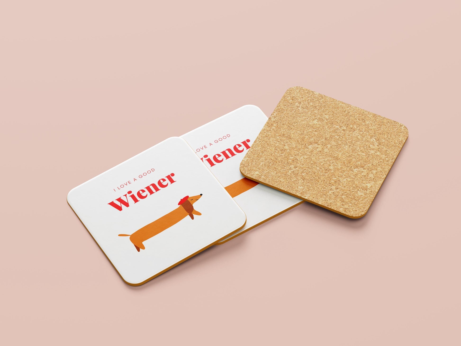 Set van 1,2 of 4 - Grappige Teckel Onderzetter 'I Love a Good Wiener' Valentijnsdag Cadeau voor Hondenliefhebbers