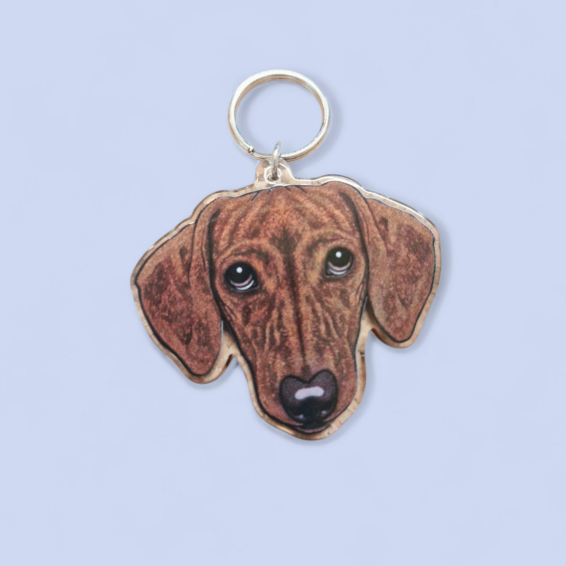 Teckel Kop Sleutelhanger - Chocolade Korthaar Teckel Hoofd