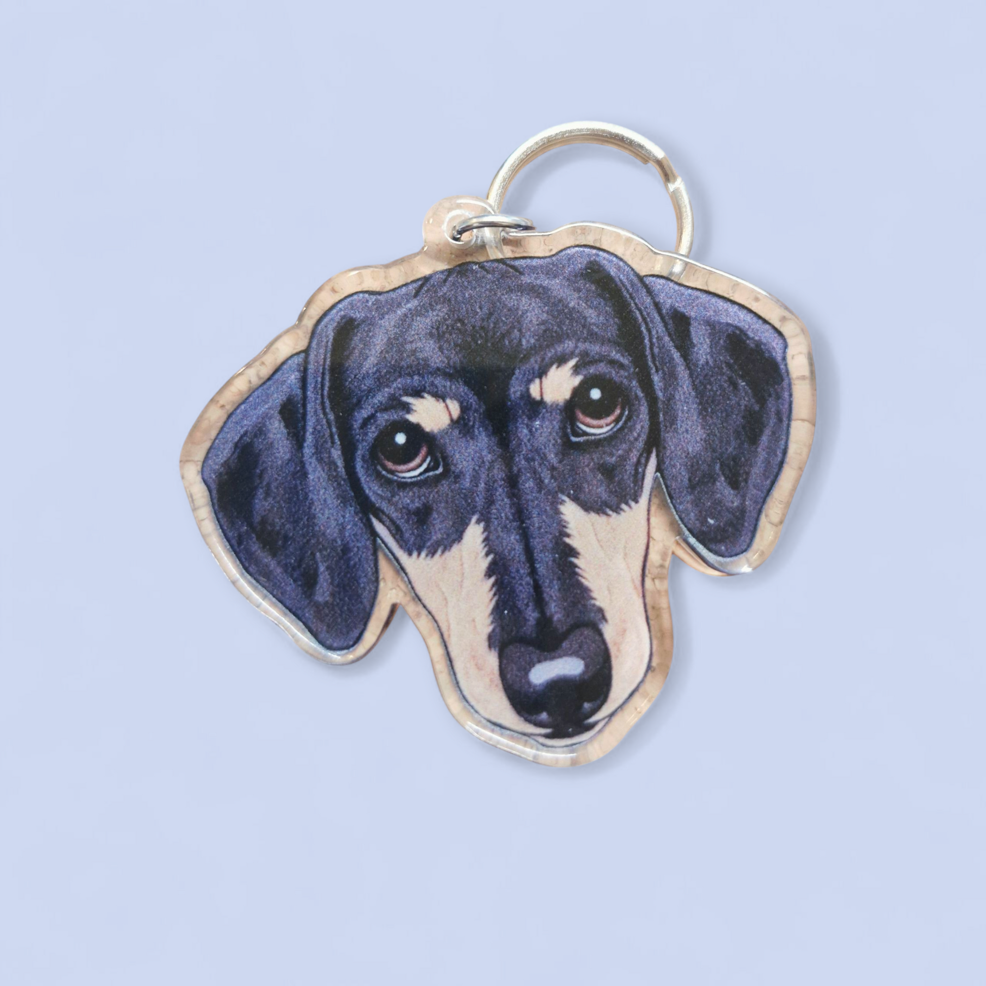 Teckel Kop Sleutelhanger Black & Tan - Kortharige Teckel Hoofd