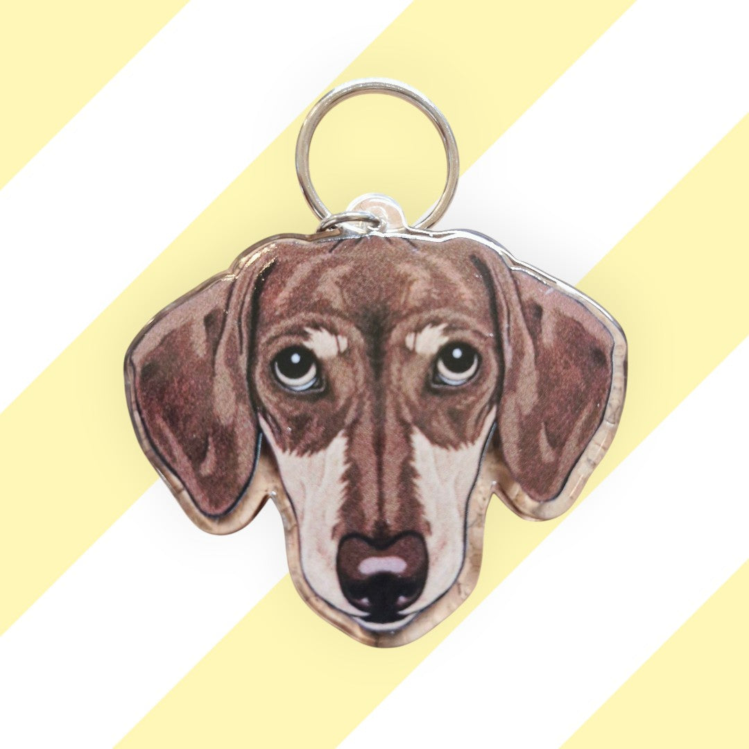 🐕 Teckel Kop Sleutelhanger - Brown & Tan Korthaar Teckel Hoofd