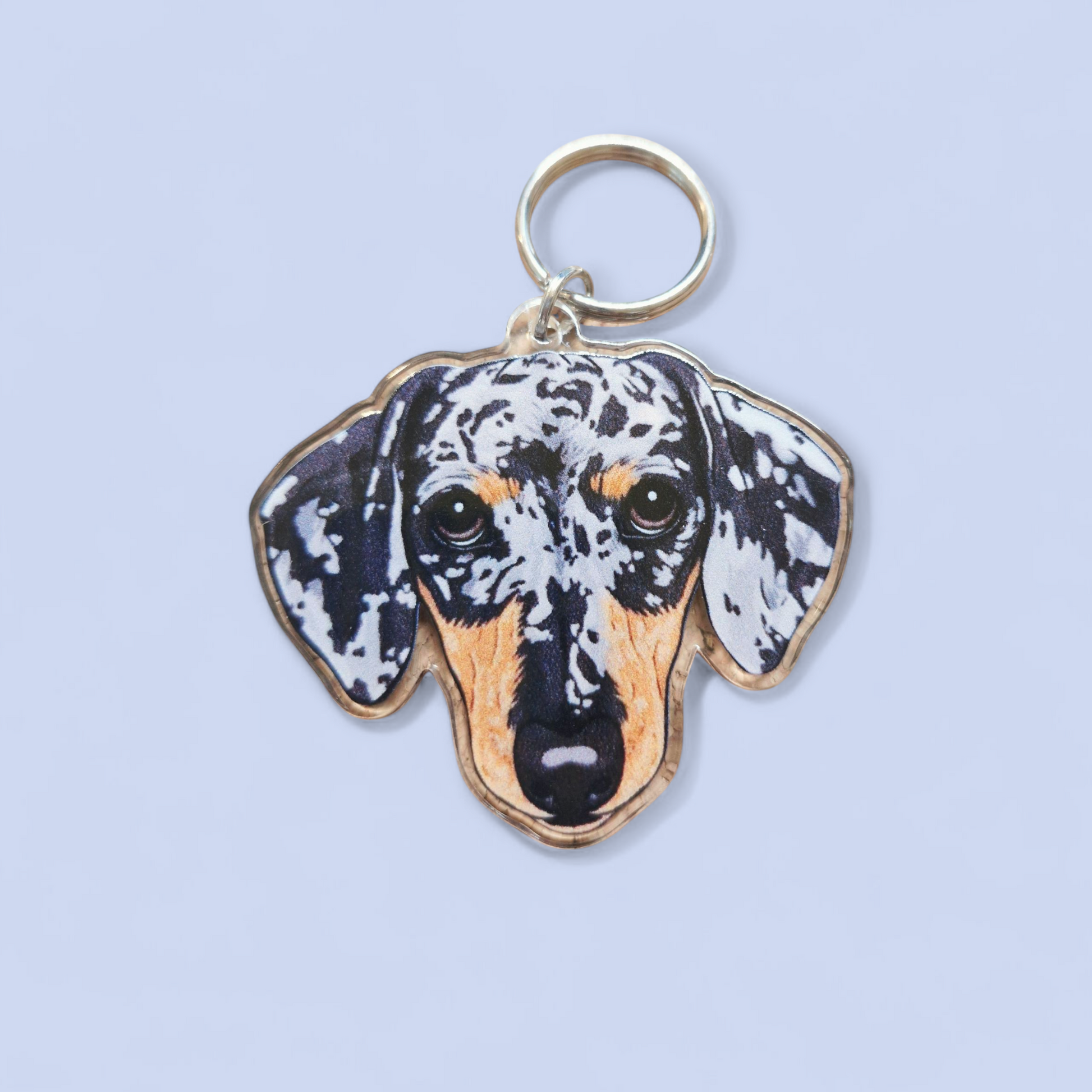 Teckel Kop Sleutelhanger Bruin-Zilver Merle Dapple - Kortharige Teckel Hoofd