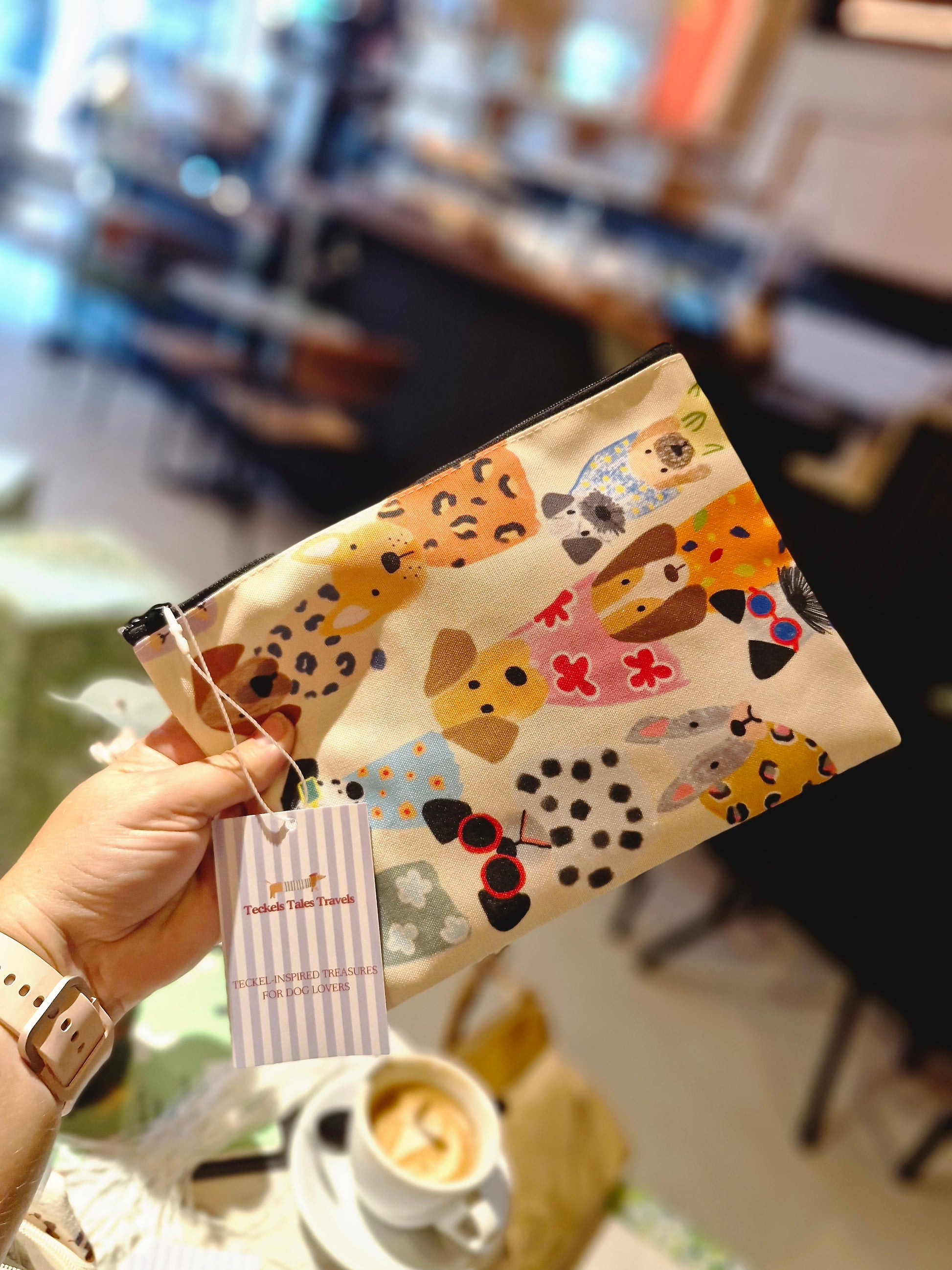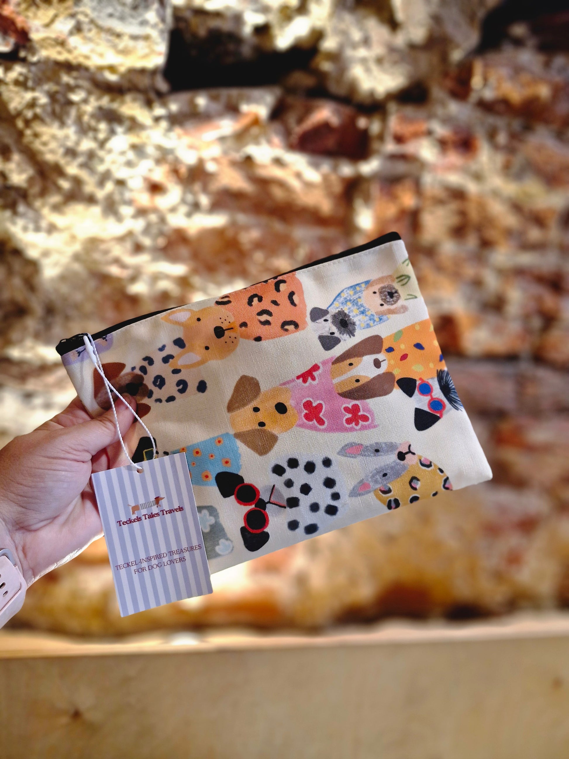 Stel je voor: Je bent op reis en pakt je toiletspullen uit deze vrolijke toiletzak met kleurige honden. Direct een glimlach en herinnering aan je eigen viervoeter thuis!