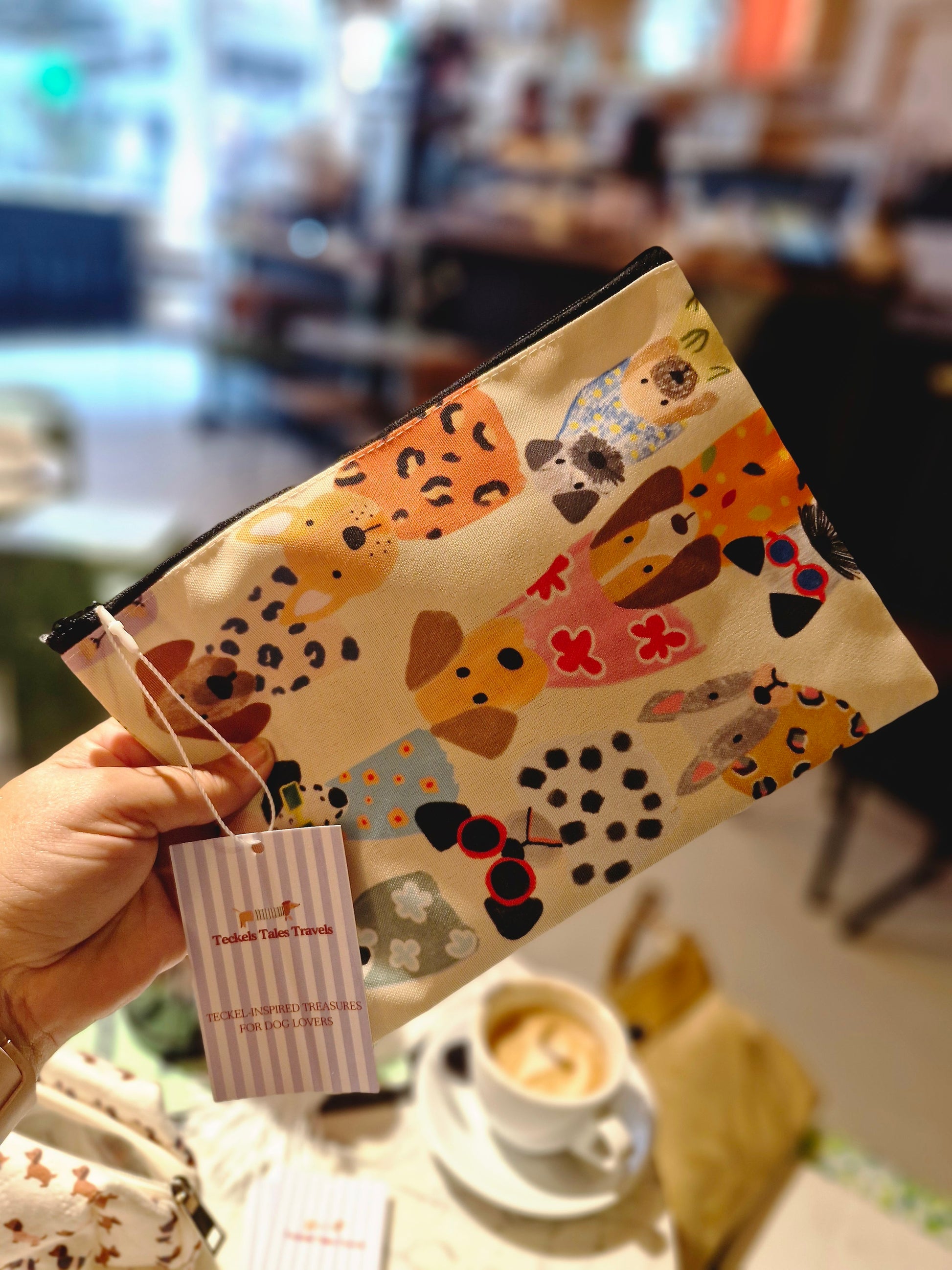 Deze vrolijke toiletzak met verschillende kleurige honden erop is perfect voor elke hondenliefhebber die stijl en functionaliteit wil combineren tijdens het reizen of thuis!