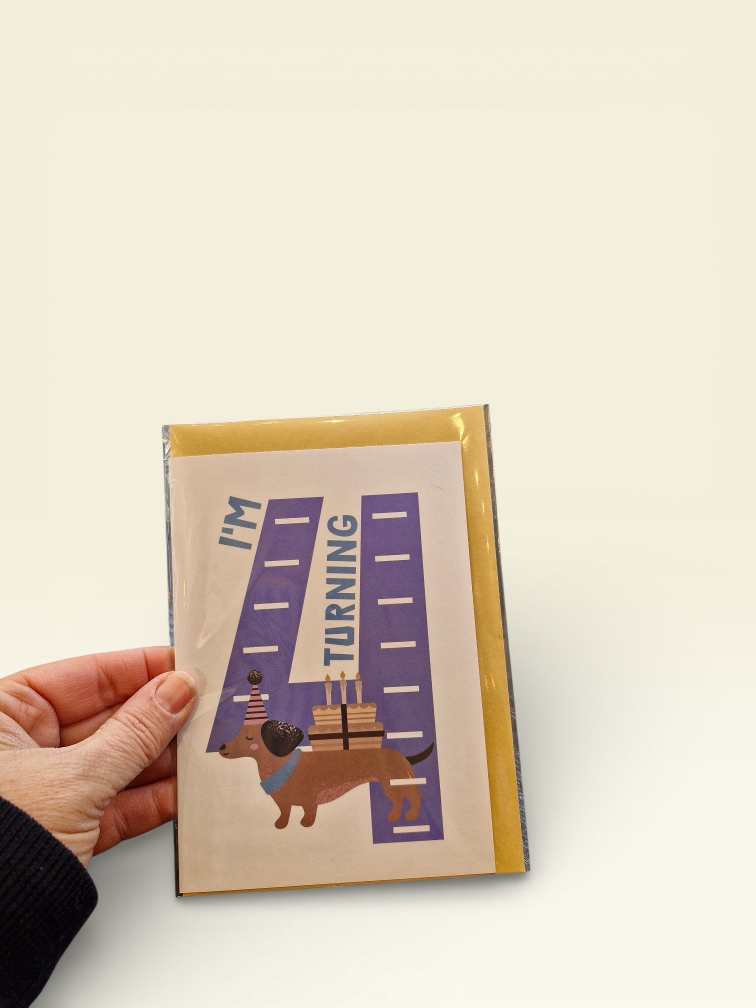 Wenskaart 'I'm turning 4' - verjaardag hond